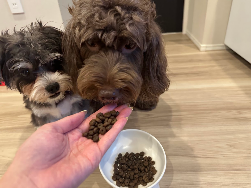袋を開けた瞬間、ドッグフード独特の香りが広がり、わが家の子犬の小型犬と成犬の中型犬が飛んできました。