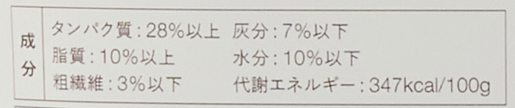 | たんぱく質 | 28%以上 | 脂質 | 10%以上 |