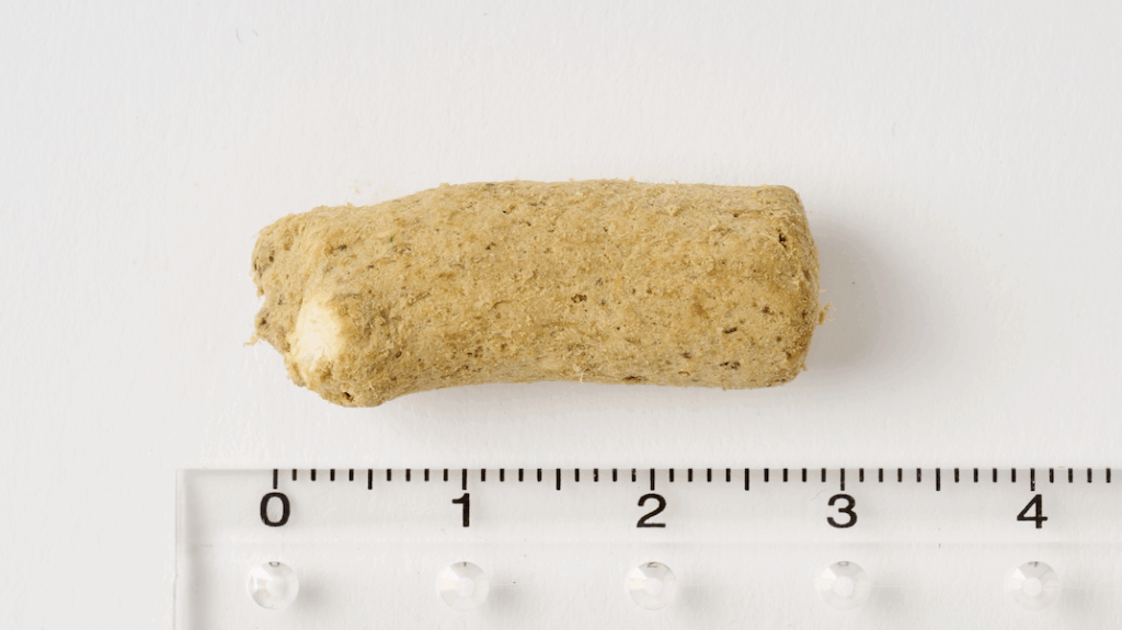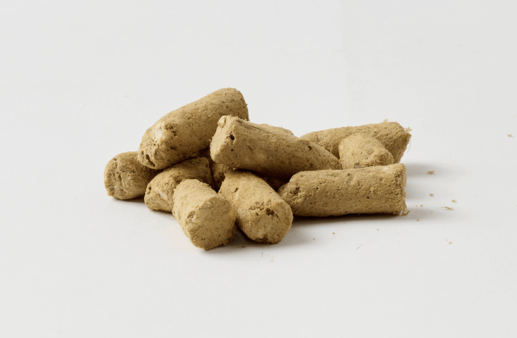 袋を開けると、軽くて香ばしい香りのフリーズドライ粒がぎっしり。トライプ入りとは思えないほど、ニオイが穏やかで扱いやすい点も好印象。水やぬるま湯で戻せば、消化吸収に優れた“生食のような一食”として与えられるのも魅力です。