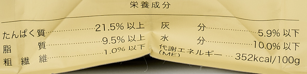 | たんぱく質 | 21.5%以上 | 脂質 | 9.5%以上 |