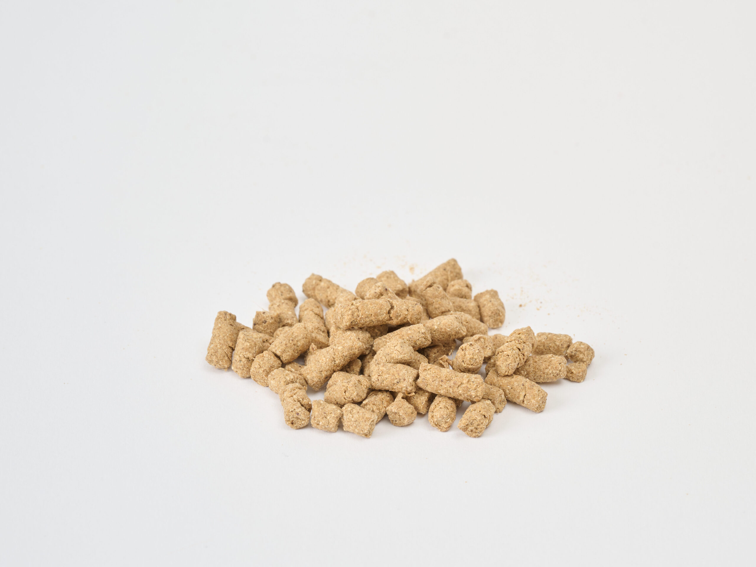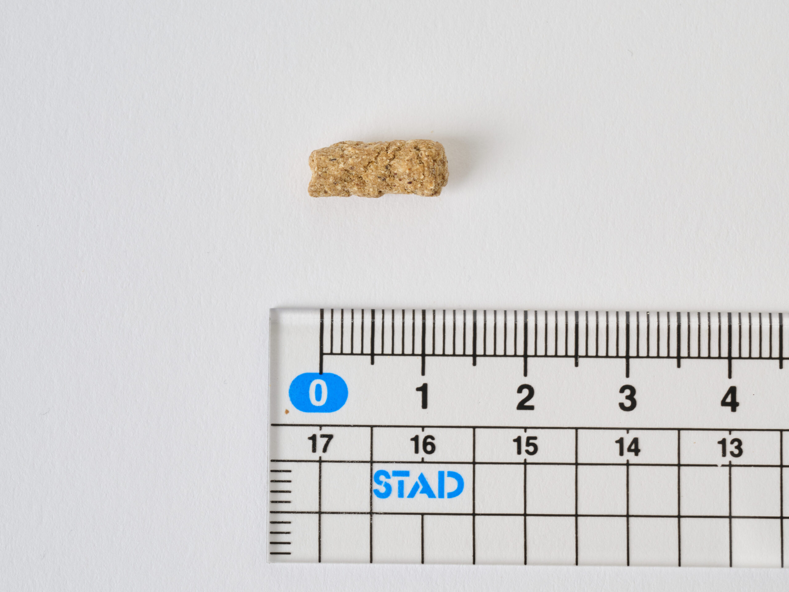 フードはノンオイルコーティングで仕上げており、フード表面に嗜好性オイル等の添加も行っていません。粒の大きさは珍しい細長い歪な形で不揃い。