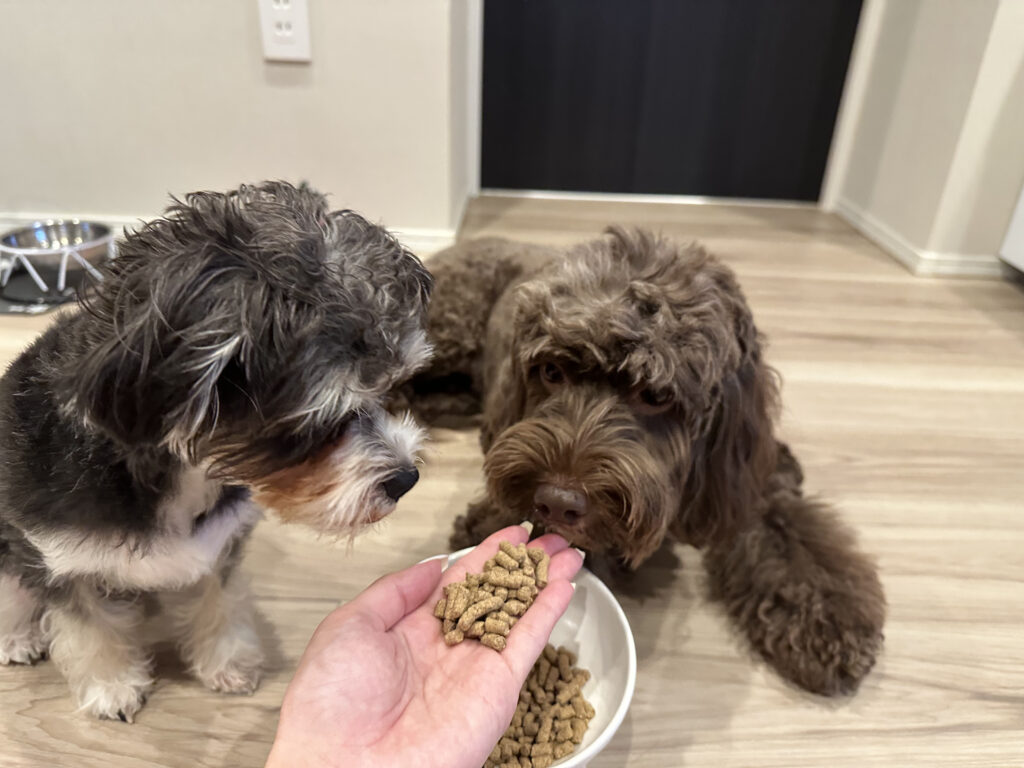 今回は私の愛犬たち、子犬のシュナウザー×マルチーズ(小型犬)と成犬のプードル×イングリッシュスプリンガー(中型犬)に実際に試してみました。食いつきや毛並み・便の様子や、詳しい特徴についてお伝えしますので、愛犬のフードに悩んでいる方は、ぜひ紹介する内容を参考にしてください。