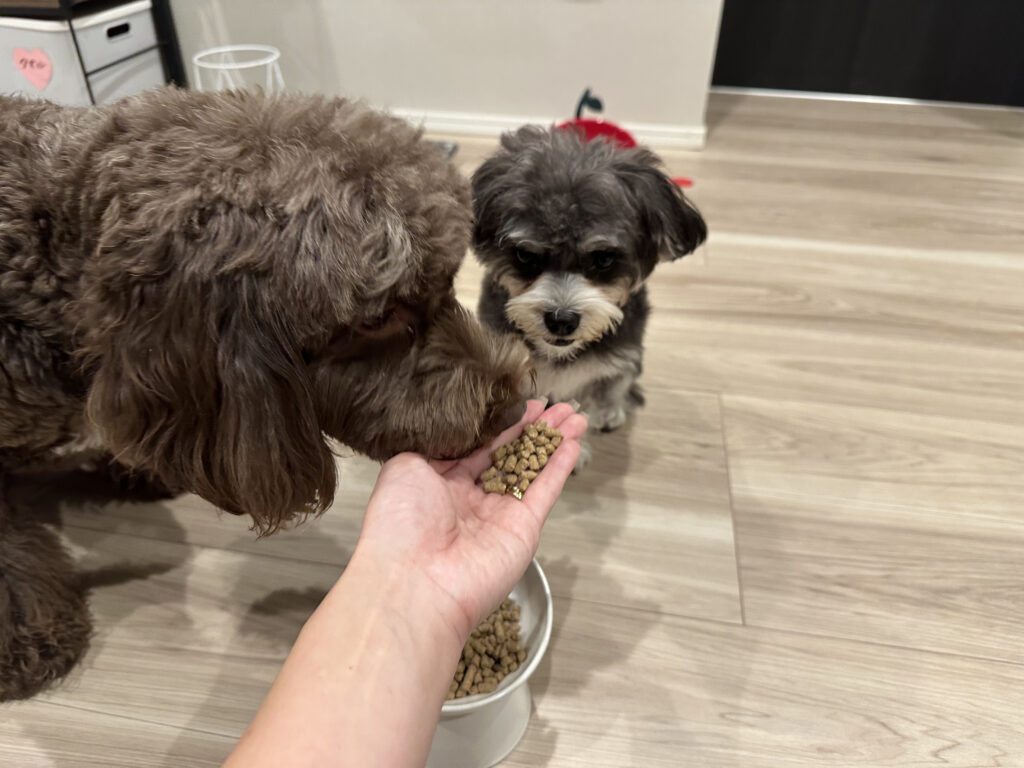 今回は私の愛犬たち、子犬のシュナウザー×マルチーズ(小型犬)と成犬のプードル×イングリッシュスプリンガー(中型犬)に実際に試してみました。今まさに愛犬に合うフードを探している方、現在のフードは食いつきが悪く日々の食事に苦労している方必見の内容ですので、ぜひ最後までご覧になり、フード選びの参考にしてください。