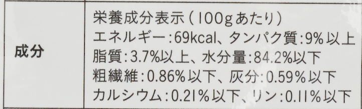 | たんぱく質 | 9%以上 | 脂質 | 3.7%以上 |
