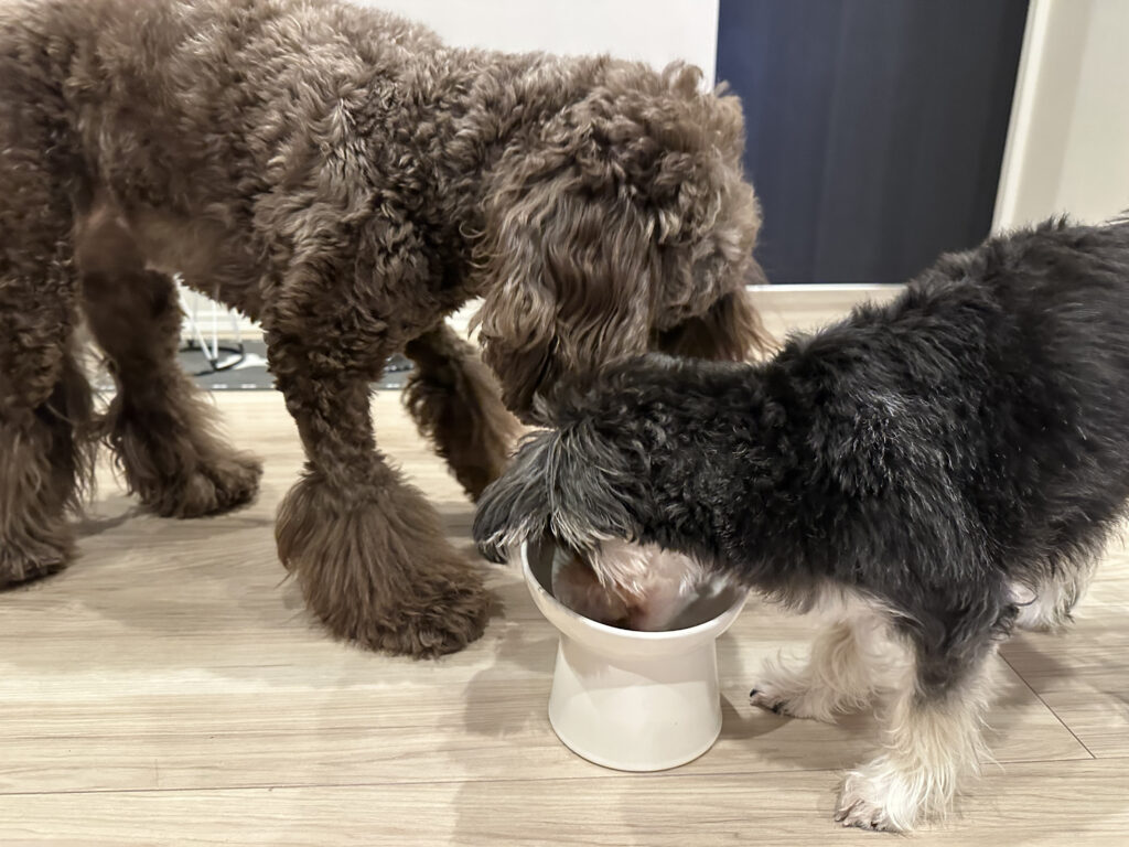 今回は私の愛犬たち、子犬のシュナウザー×マルチーズ(小型犬)と成犬のプードル×イングリッシュスプリンガー(中型犬)に実際に試してみました。実食した際の様子や身体の変化、フードの特徴について詳しく紹介しますので、ぜひ参考にしてください。