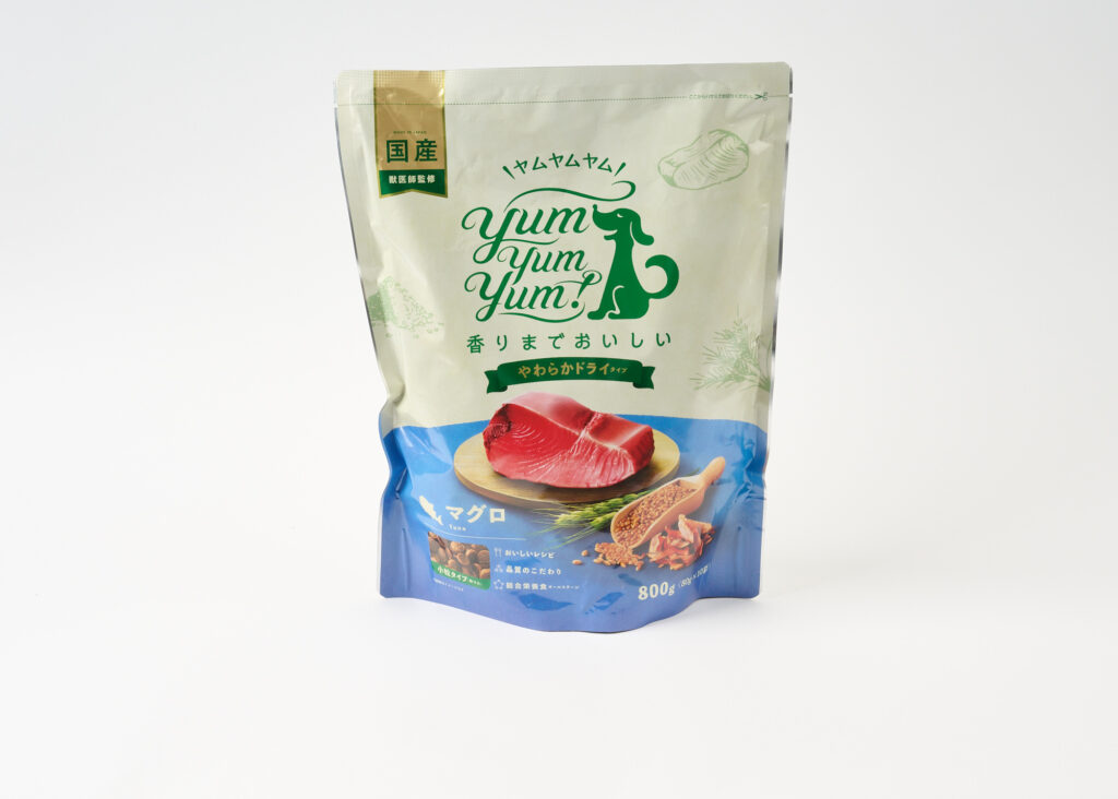 「ヤムヤムヤムマグロ やわらかドライタイプ」は、皮膚トラブルや便臭の改善などに効果が期待できる成分が豊富に含まれており、子犬から成犬、シニア犬まで全年齢対応となっています。小粒で柔らかく食べやすいので、食べムラがある子にもおすすめ。