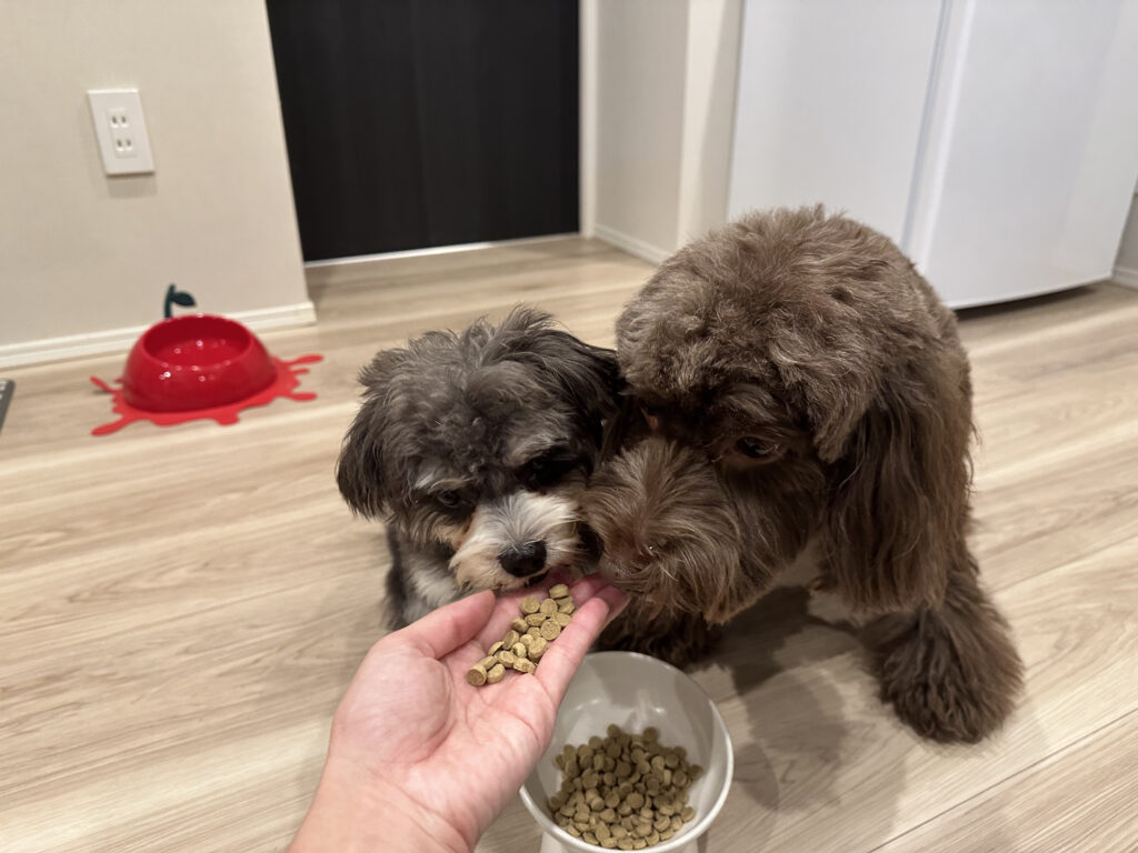 今回は私の愛犬たち、子犬のシュナウザー×マルチーズ(小型犬)と成犬のプードル×イングリッシュスプリンガー(中型犬)に実際に試してみました。実食の様子や便の変化、含まれる成分や期待できる効果についても詳しく紹介しますので、ぜひ参考にしてください。