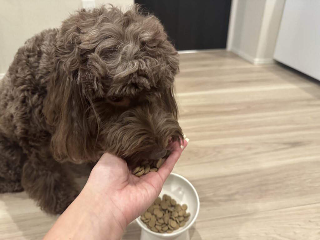 今回は私の愛犬、成犬のプードル×イングリッシュスプリンガー(中型犬)に実際に試してみました。中型犬の食いつきや食べやすさ、実際に食べてからの便や身体の変化などについて詳しく紹介しますので、ぜひ参考にしてください。