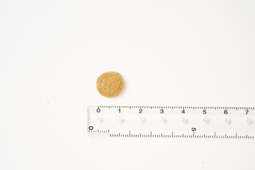 粒は直径約11.5~13.5mmと大きめなので、大型犬が丸飲みしにくく、しっかり良く噛んで食べられるように配慮されています。