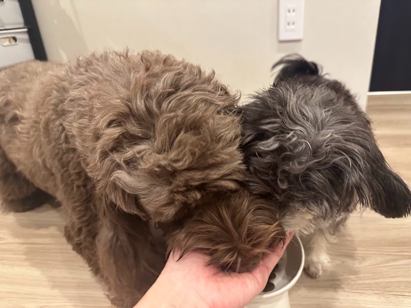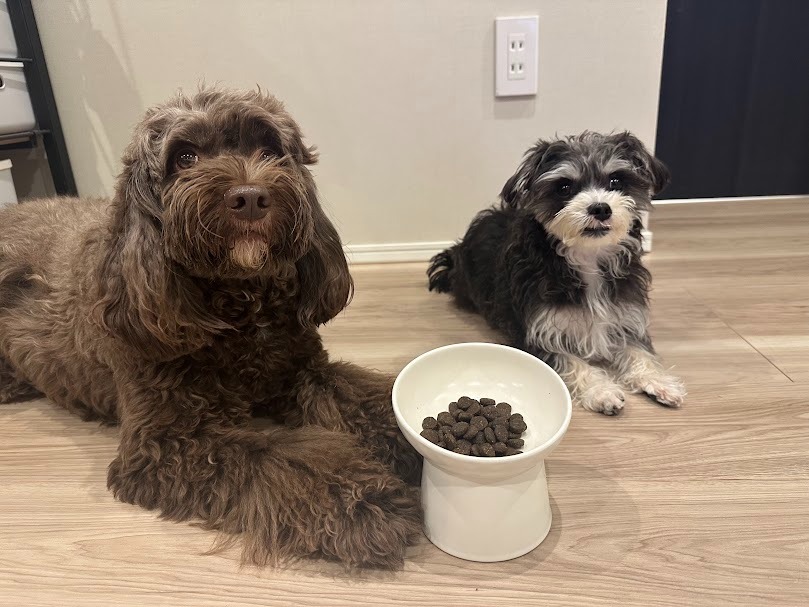 今回は私の愛犬たち、子犬のシュナウザー×マルチーズ(小型犬)と成犬のプードル×イングリッシュスプリンガー(中型犬)に実際に試してみました。愛犬に「アカナ グラスフェッドラム」を与えた際の食いつき、便や体調の変化を紹介しますので、ぜひ最後までご覧ください。