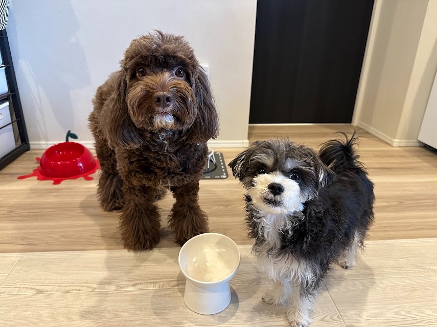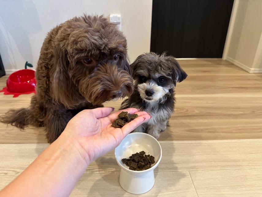 今回は私の愛犬たち、子犬のシュナウザー×マルチーズ(小型犬)と成犬のプードル×イングリッシュスプリンガー(中型犬)に実際に試してみました。食いつきや便の変化、フードの特徴や1日の給餌量についても詳しく紹介しますので、ぜひ参考にしてください。