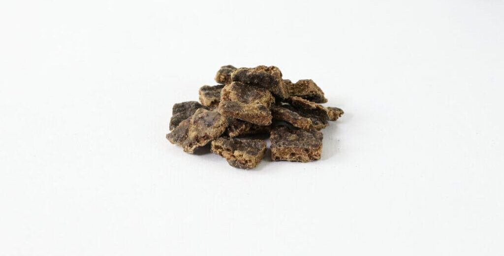 「ジウィピーク エアドライ・ドッグフード ビーフ」は、パッケージを開けた瞬間にフードの香りが広がります。香りはジャーキーのようなもので、決して強すぎることはありませんが、好みによっては合わない子もいるため、味や食感以前に匂いで拒否してしまうケースもあります。