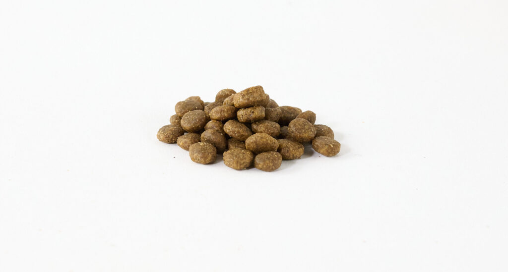 粒の表面は油分でベタつくことがなく、手に取ったときも扱いやすいフード。保管時の「フード臭さ」が気になりにくい点も好印象でした。ナチュラルで主張しすぎない香りながら、香ばしい肉系の風味がわが家の愛犬の食欲をしっかり刺激し、食いつきは良好。初めて与えた際も迷いなく食べ進めていました。