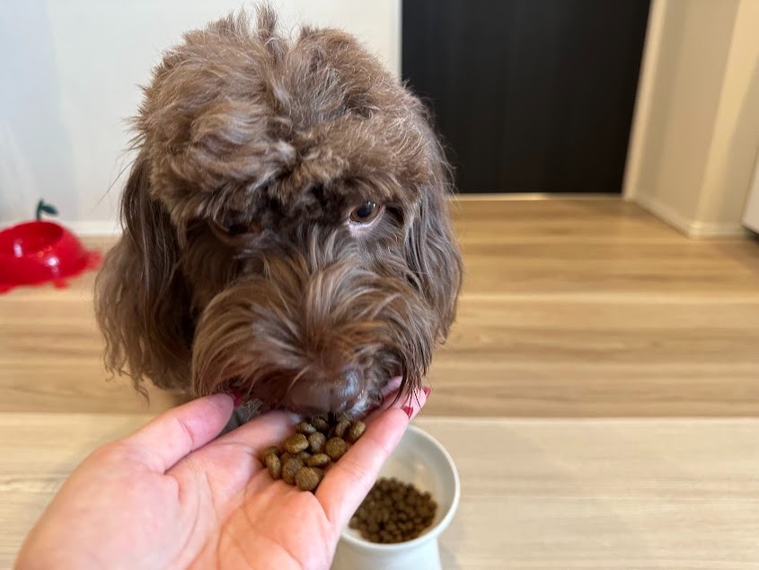 今回は私の愛犬、成犬のプードル×イングリッシュスプリンガー(中型犬)に、実際に試してみました。「ソルビダ グレインフリー チキン 成犬用」の食いつき、便や体調の変化などを詳しくお伝えしますので、ぜひ参考にしてください。