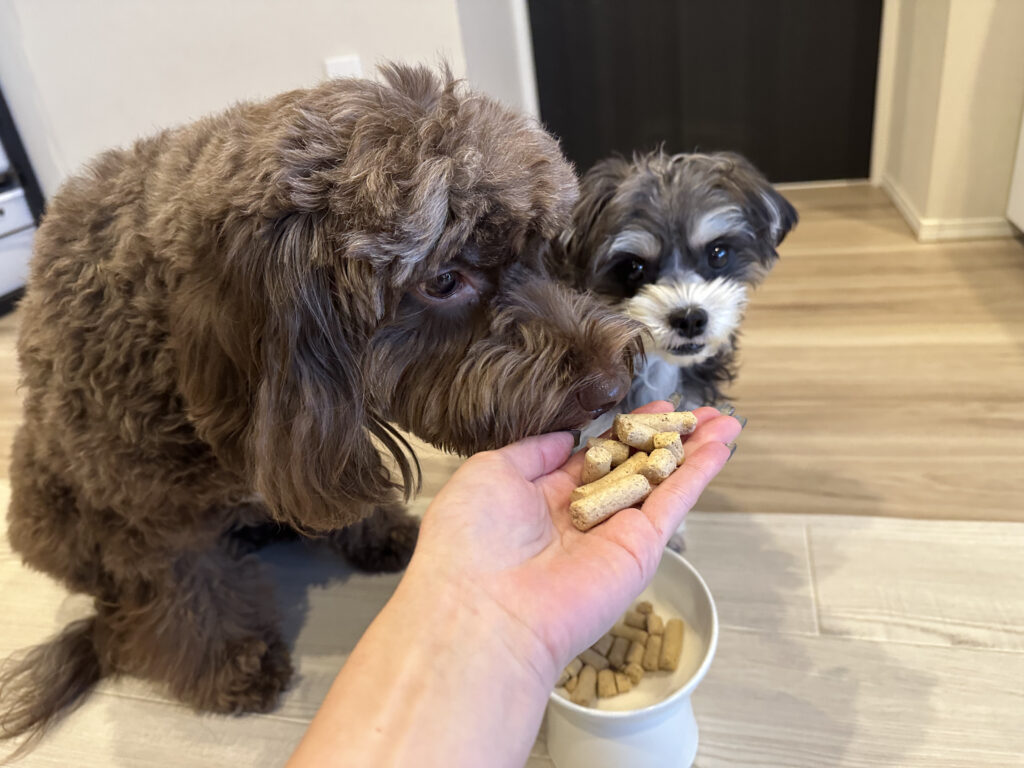 今回は私の愛犬たち、子犬のシュナウザー×マルチーズ(小型犬)と成犬のプードル×イングリッシュスプリンガー(中型犬)に実際に試してみました。愛犬の食いつきや便の様子など、リアルな変化を詳しく紹介しますので、ぜひ参考にしてください。