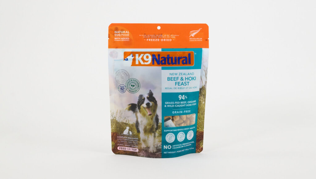 豊富な栄養が含まれる新鮮なビーフと、クセがなく上品なホキ(白身魚)を使用している「K9 ビーフ&ホキ(白身魚)・フィースト」は、特殊なフリーズドライ製法を採用しています。素材の栄養素や風味は壊さず仕上げているため、嗜好性も高く愛犬の食いつきも期待できるフードです。