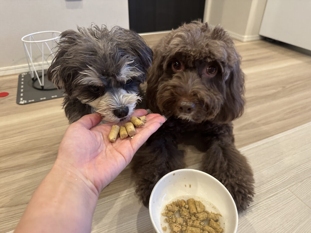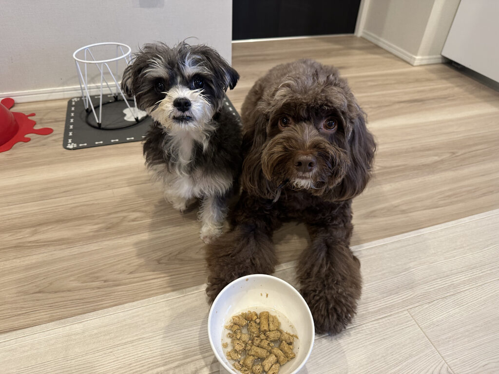 今回は私の愛犬たち、子犬のシュナウザー×マルチーズ(小型犬)と成犬のプードル×イングリッシュスプリンガー(中型犬)に実際に試してみました。2匹のリアルな食いつきや便・体調の変化などを詳しくお伝えしますので、ぜひ参考にしてください。