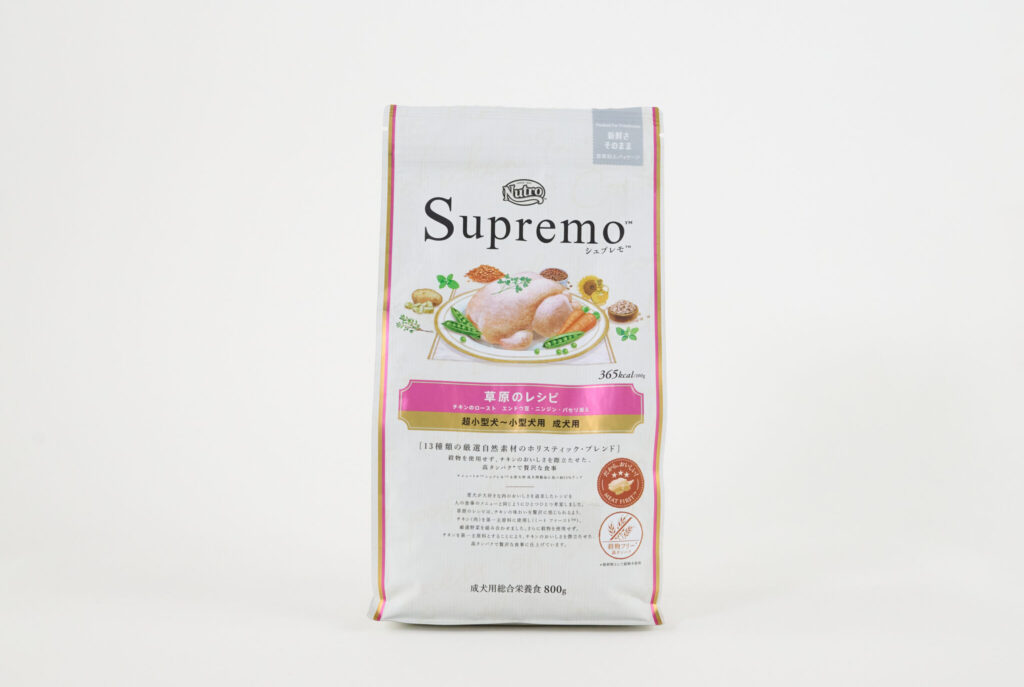 「シュプレモ 草原のレシピ チキン」は、超小型犬から小型犬の成犬用レシピです。子犬にも与えられますが、成犬以上に高いエネルギーが求められる子犬の場合、必要な栄養素が不足してしまうことも。ニュートロには子犬に特化した製品ラインナップもあるので、年齢に合ったフードを選んであげましょう。