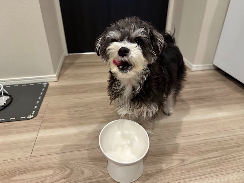 今回は私の愛犬、成犬のシュナウザー×マルチーズ(小型犬)に実際に試してみました。「シュプレモ 地中海のレシピ ラム」を食べた反応や便・体調の変化などについて詳しくレビューしますので、ぜひ参考にしてください。