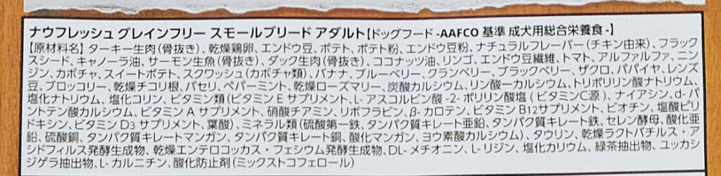 「ナウフレッシュ グレインフリー スモールブリード アダルト」の原材料と安全性について