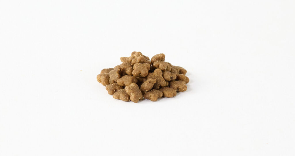 「ナウフレッシュ グレインフリー スモールブリード アダルト」は小型犬向けの超小粒設計となっています。クリーバー型のかわいらしいデザインで見た目も楽しめる粒は、およそ1cmと小さめ。口の小さな小型犬はもちろん、噛む力が弱くなったシニア犬にもおすすめです。
