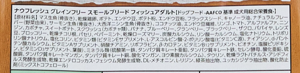 「ナウフレッシュ グレインフリー スモールブリード フィッシュアダルト」の原材料と安全性について