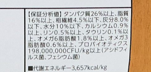 | たんぱく質 | 26%以上 | 脂質 | 16%以上 |