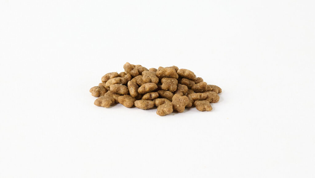 どちらかというと、魚原料そのものの香りがダイレクトに伝わる印象で、ナチュラルさはあるものの、好みは分かれる可能性があります。粒の形は、小型犬の口に合わせたやや丸みのある小粒タイプで珍しい形状。
