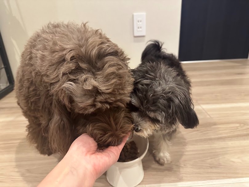 今回は私の愛犬たち、子犬のシュナウザー×マルチーズ(小型犬)と成犬のプードル×イングリッシュスプリンガー(中型犬)に実際に試してみました。愛犬の食いつきや体調・便の変化について詳しく紹介しますので、ぜひ参考にしてください。
