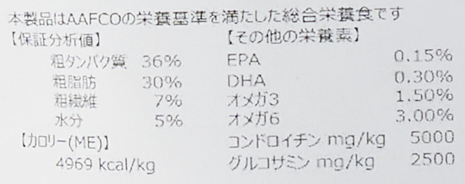 | 粗たんぱく質 | 36% | 粗脂質 | 30% |