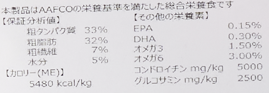 | 粗たんぱく質 | 33% | 粗脂質 | 32% |