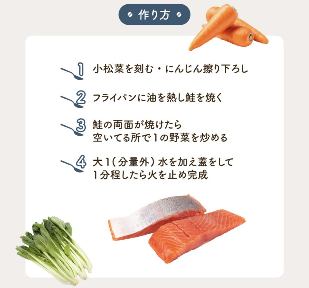 与える際は、必ず人肌程度まで温め直し、火傷をしないよう温度をよく確認してください。水分が多いメニューは解凍後も食べやすく重宝します。