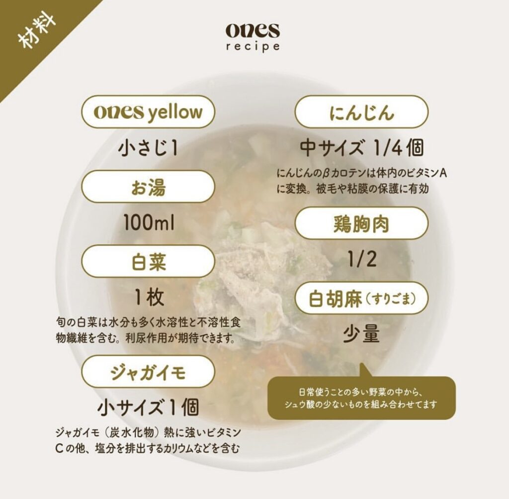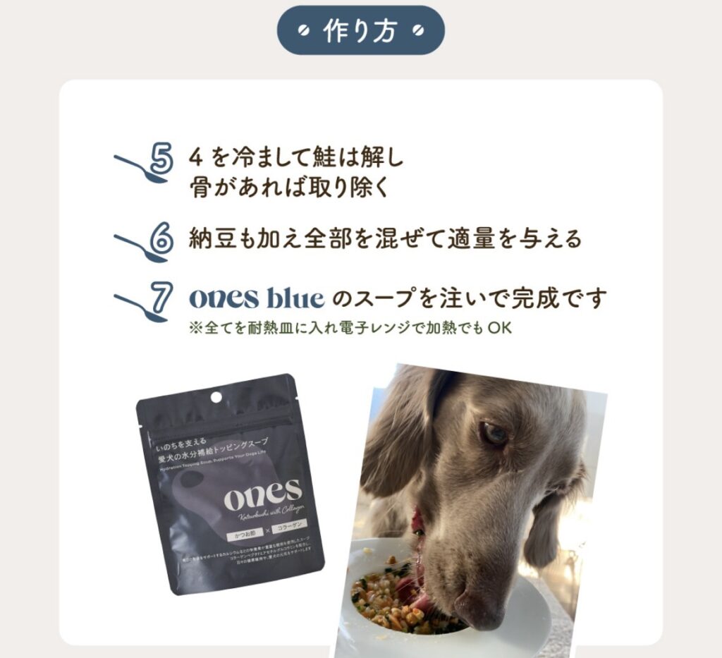 ones blueを使用した皮膚や皮毛の健康ケアができるアレンジレシピ。