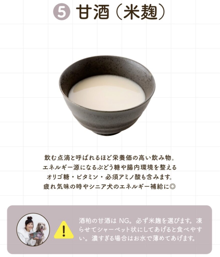 ⚠酒粕の甘酒はNG。必ず米麹を選びます。凍らせてシャーベット状にしてあげると食べやすい。